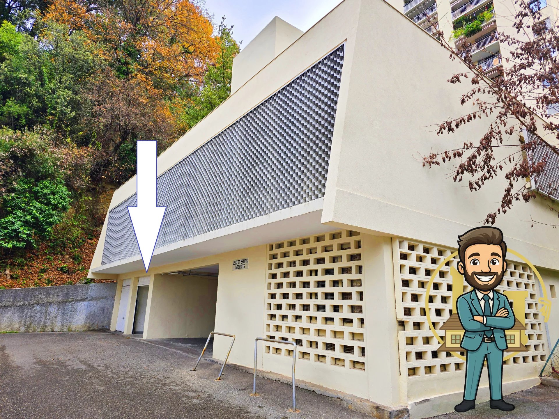 En rez-de-chaussée extérieur – de plain-pied – Facile d’accès – Barrière automatique de sécurité – Garage fermé par une porte basculante manuelle