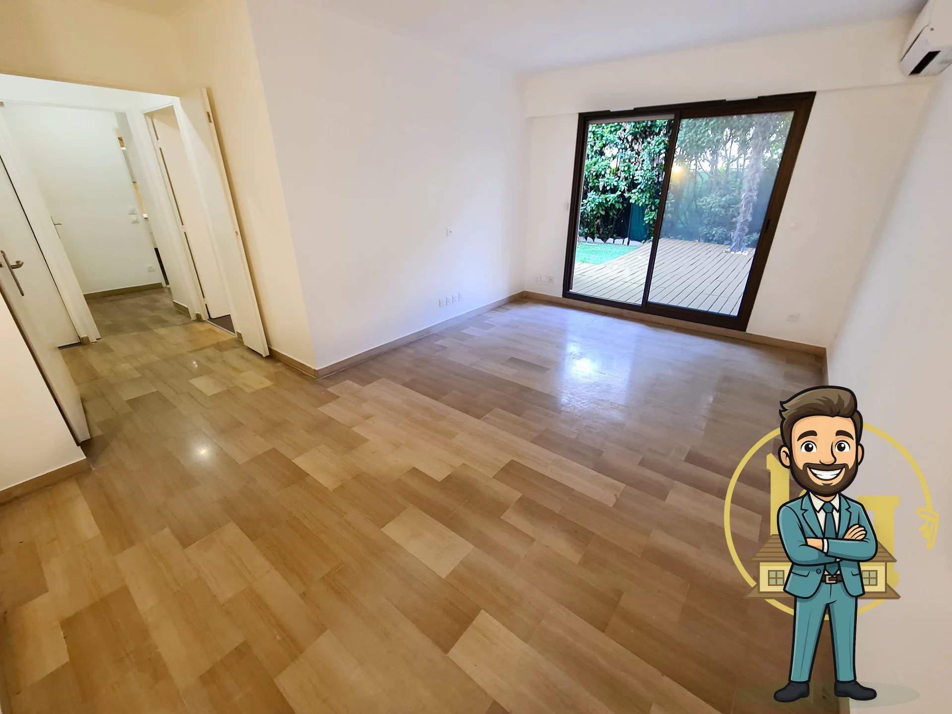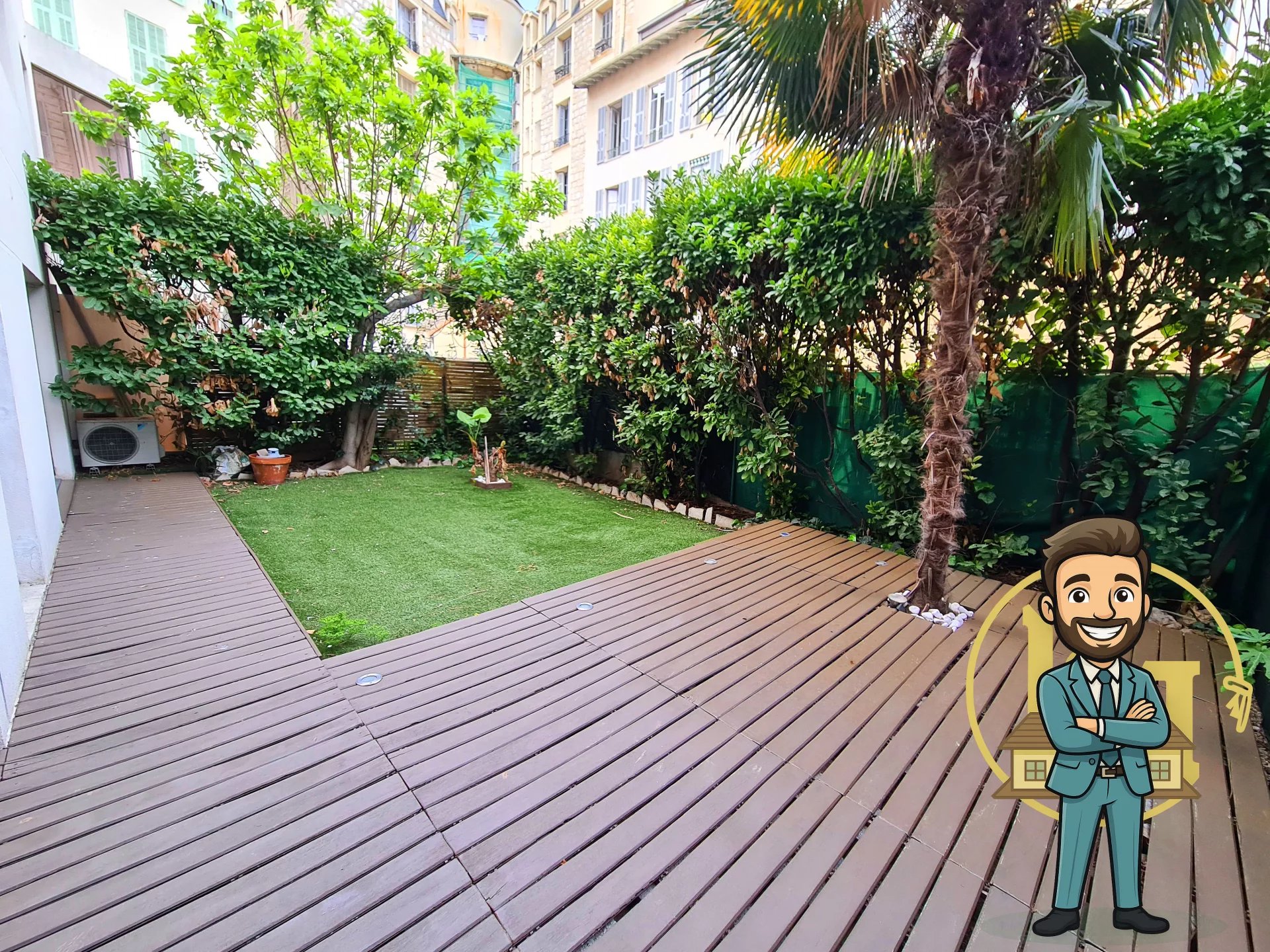 A deux pas du Negresco et de la mer – Dans une résidence de standing – Magnifique appartement de 51,42 m² en rez-de-jardin – Jardin avec terrasse de 64 m² - Cuisine indépendant aménagée – Chambre avec rangements - Climatisation réversible - Eau froide collective